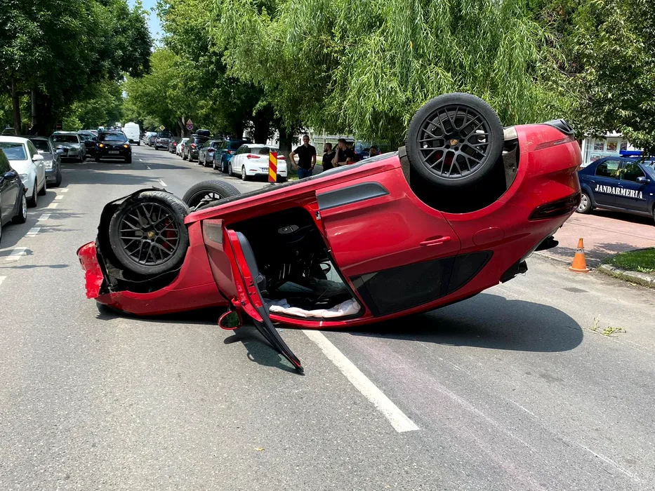 ACCIDENT. Iubita unui afacerist celebru s-a răsturnat cu mașina de lux în nordul Capitalei. Imagini fabuloase