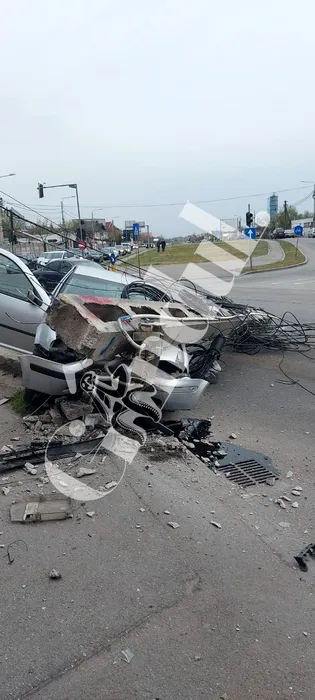 Accident la Craiova. Un șofer beat a dărâmat un stâlp de electricitate, care a căzut pe propria sa mașină | FOTO + VIDEO
