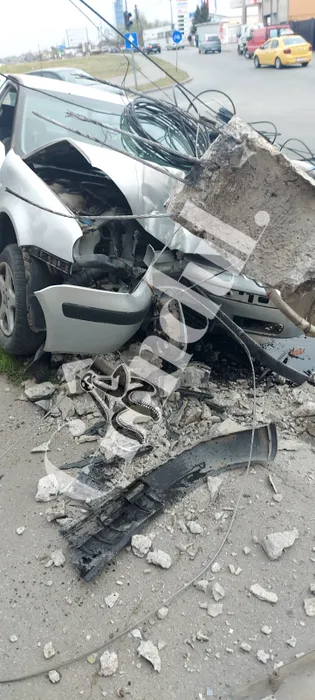 Accident la Craiova. Un șofer beat a dărâmat un stâlp de electricitate, care a căzut pe propria sa mașină | FOTO + VIDEO