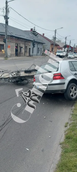 Accident la Craiova. Un șofer beat a dărâmat un stâlp de electricitate, care a căzut pe propria sa mașină | FOTO + VIDEO