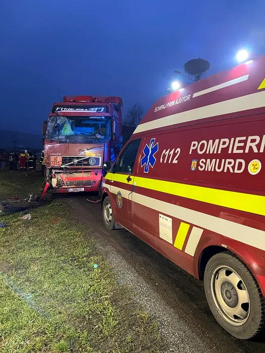 UPDATE – Accident pe o șosea din Bistrița-Năsăud între o cisternă și un autocar, în care au fost implicate 15 persoane. Unul dintre pasageri a murit (FOTO-VIDEO)