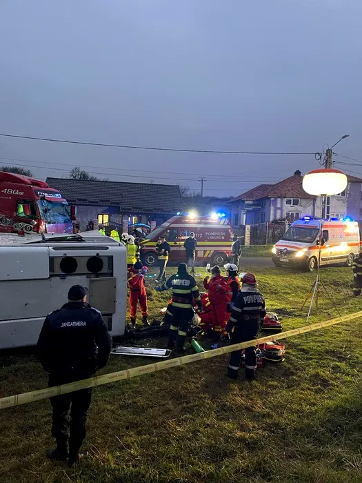UPDATE – Accident pe o șosea din Bistrița-Năsăud între o cisternă și un autocar, în care au fost implicate 15 persoane. Unul dintre pasageri a murit (FOTO-VIDEO)