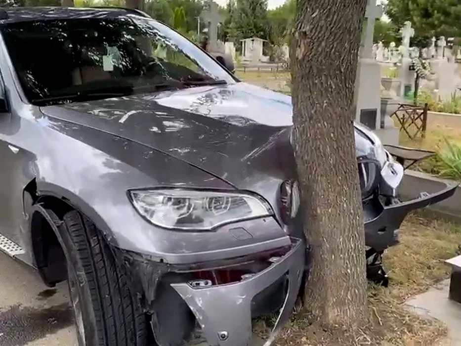 Accident rutier grav într-un cimitir din Iași. Un șofer de BMW nu a dat prioritate și a intrat într-o altă mașină, apoi a sărit peste cavouri | VIDEO & FOTO