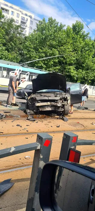 Accident rutier grav pe Calea Văcărești din Capitală. Un troleibuz și două mașini s-au ciocnit