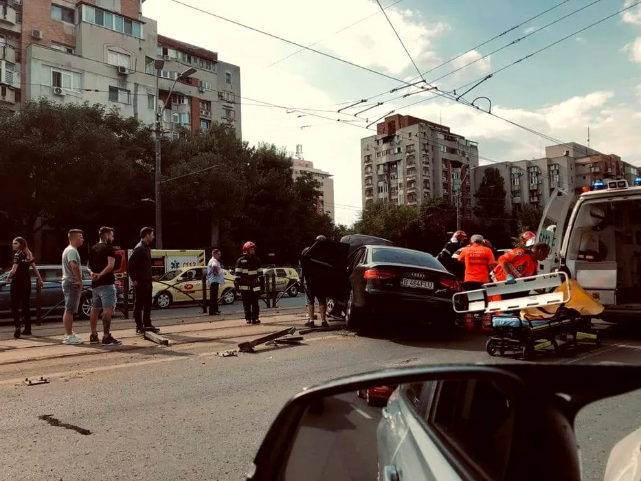 Accident rutier grav pe Calea Văcărești din Capitală. Un troleibuz și două mașini s-au ciocnit