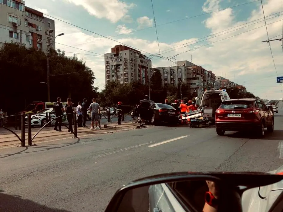 Accident rutier grav pe Calea Văcărești din Capitală. Un troleibuz și două mașini s-au ciocnit