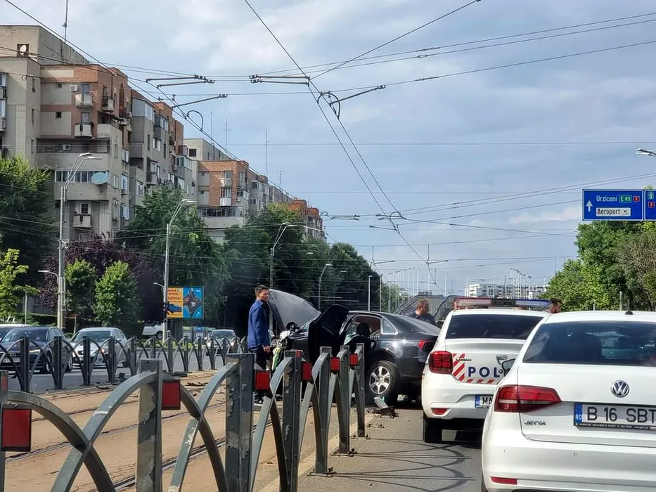 Accident rutier grav pe Calea Văcărești din Capitală. Un troleibuz și două mașini s-au ciocnit