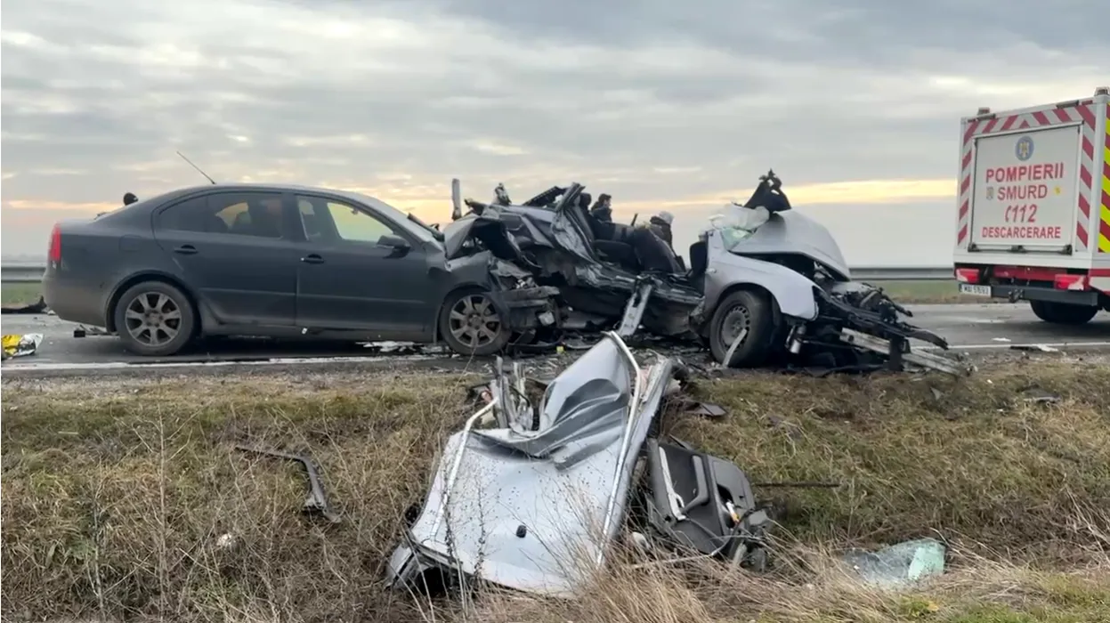 Accident rutier TERIBIL în Dolj. Un TIR și două mașini s-au făcut praf. Trei morți și șase răniți grav. Principalul vinovat, o tânără de 19 ani