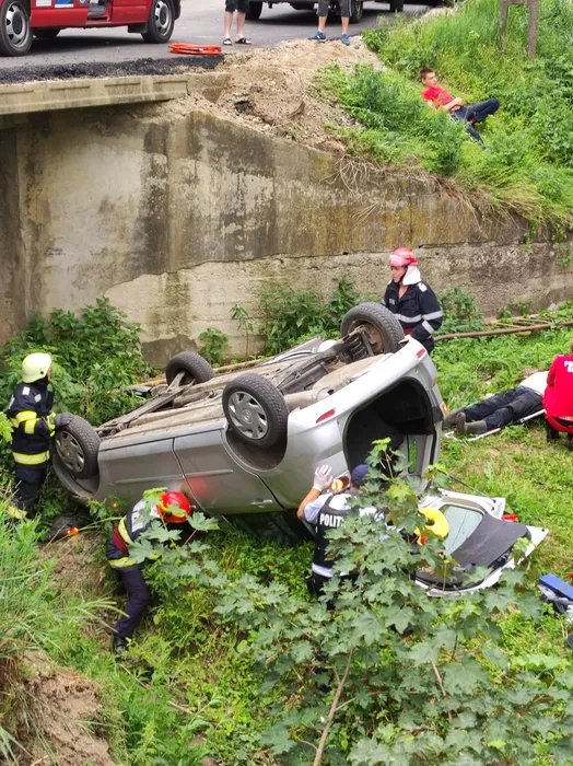 GALERIE FOTO: FOTO | Accident soldat cu un mort și doi răniți, pe un drum comunal din Neamț. Șoferul unei mașini a pierdut controlul volanului și a căzut de pe un pod