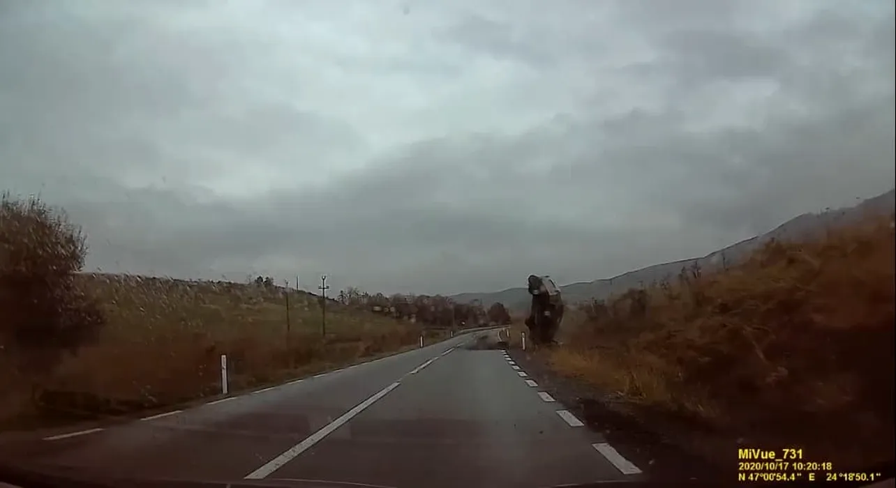 Accident spectaculos în Bistrița-Năsăud, surprins de o cameră de bord. Un șofer s-a răsturnat cu mașina, după o depășire neregulamentară (VIDEO)