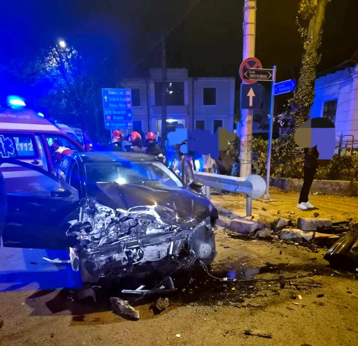 ACCIDENT spectaculos în Pitești, cu patru mașini. Una dintre ele s-a răsturnat în urma unui impact violent