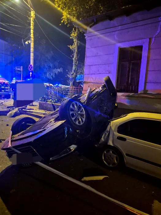 ACCIDENT spectaculos în Pitești, cu patru mașini. Una dintre ele s-a răsturnat în urma unui impact violent