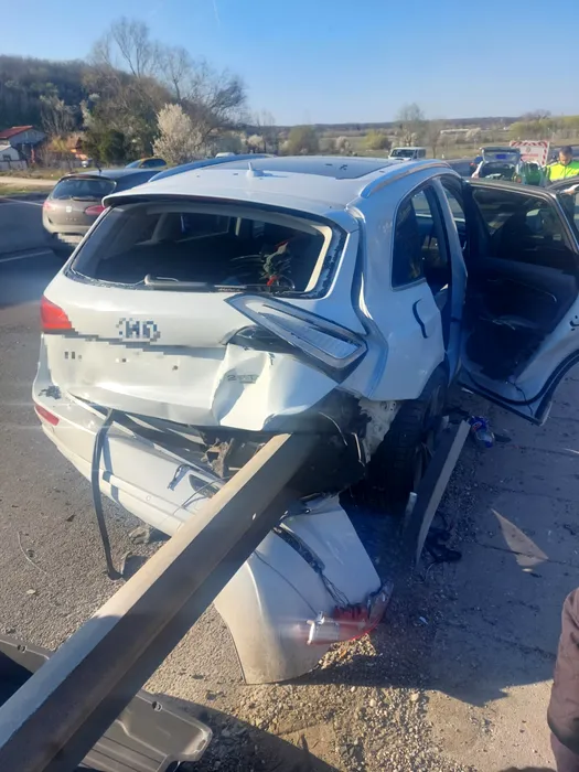 Accident spectaculos pe DN 5, în Giurgiu. O femeie a supraviețuit MIRACULOS, după ce un parapet metalic de protecție a străpuns mașina în care se afla