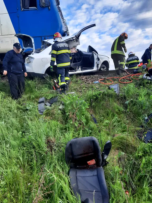 Accident teribil pe calea ferată. Mașină spulberată de TREN în Făgăraș!
