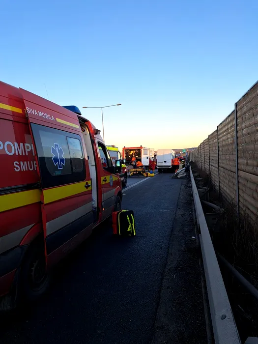 ACCIDENT teribil pe Centura Sibiului. Nouă persoane rănite după o coliziune între un TIR și două camionete
