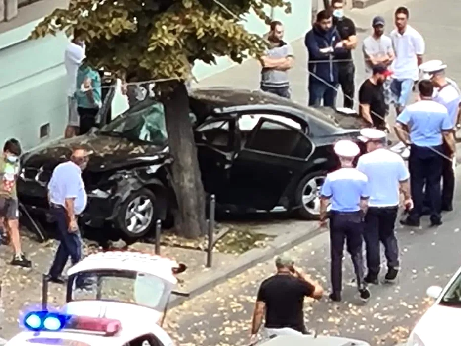 Accident uluitor în Capitală! Un șofer de BMW și-a distrus mașina după ce a ajuns cu ea pe trotuar, pe bulevardul Magheru / GALERIE FOTO