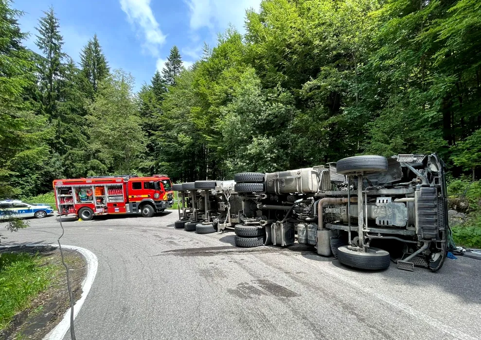 Accidente grave în stațiunea montană Sinaia: Două autoturisme s-au făcut PRAF, iar o basculantă încărcată cu pietre s-a răsturnat