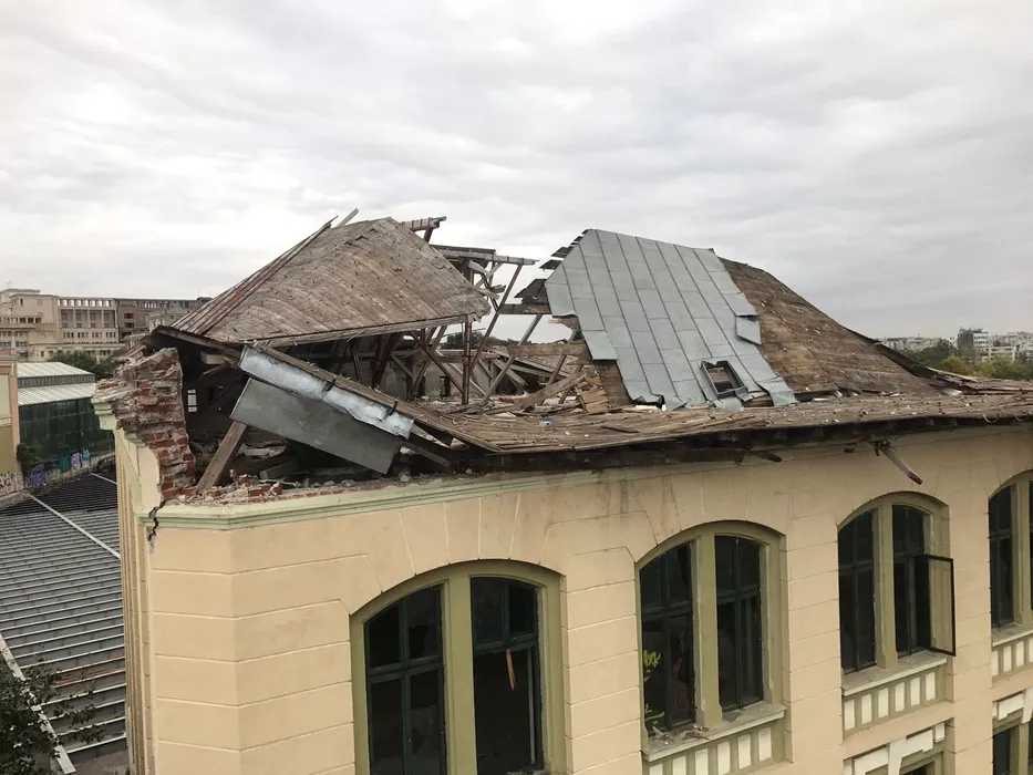 GALERIE FOTO: Acoperișul fabricii de bere din Rahova stă să se prăbușească din cauza vântului puternic. FOTO