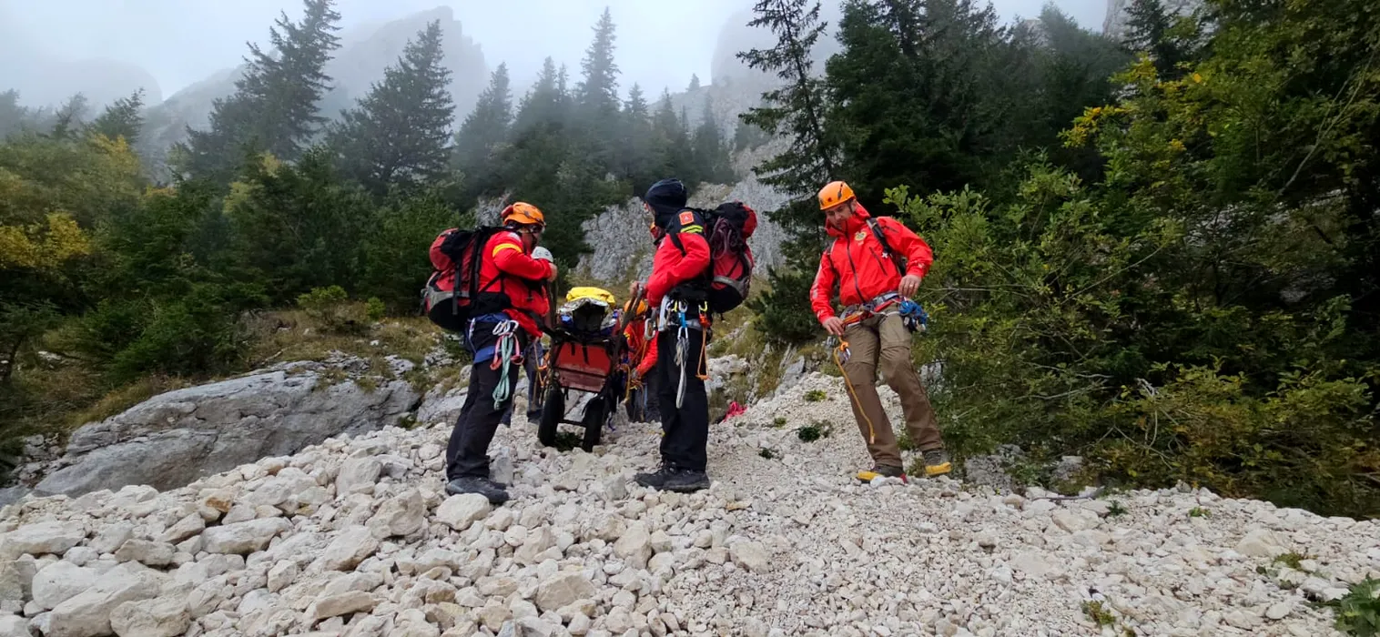 Acțiune DRAMATICĂ în Piatra Craiului. Salvamontiștii s-au luptat, timp de 17 ore, să salveze viața unui bărbat accidentat la coloana vertebrală