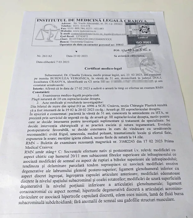 Acuzații GRAVE la adresa unei clinici din Craiova: O pacientă spune că a suferit o arsură de gradul III în timp ce făcea un RMN