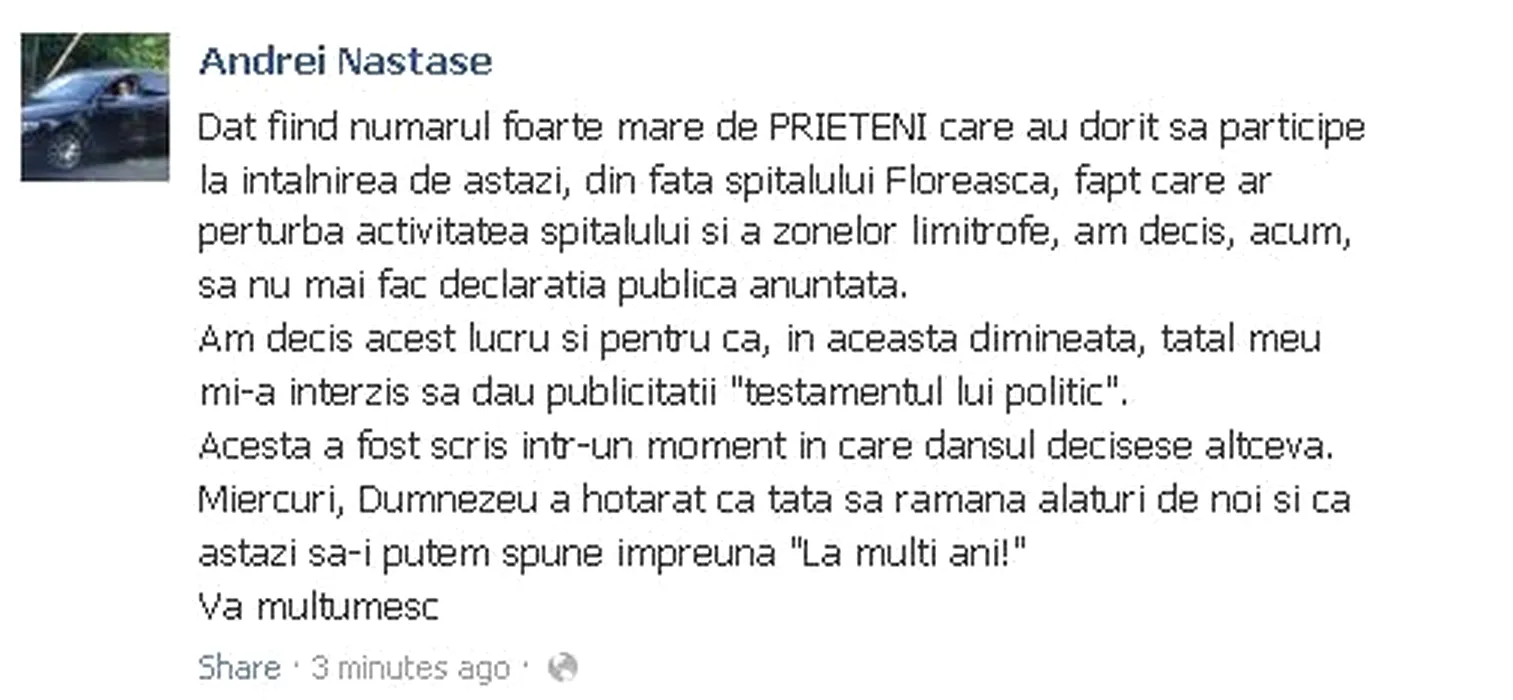 ADRIAN NĂSTASE S-A ÎMPUȘCAT. Familia Năstase a ANULAT conferința de presă, la cererea lui Adrian Năstase. Andrei Năstase voia să citească „testamentul” tatălui său