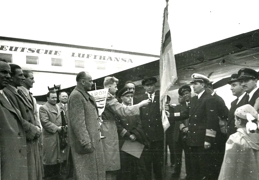 14 mai 1956. Aeroportul Băneasa. Inaugurarea liniei aeriene București-Praga-Berlin; Foto: Comunismul in România / MNIR
