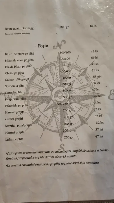 Meniul unui restaurant din Neptun-Olimp, în august 2023