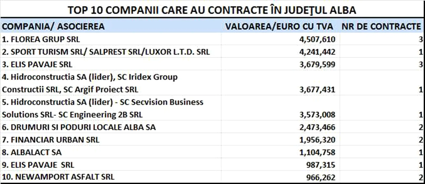 ALBA. Unde au mers banii publici în 2014. Topul firmelor care au contracte locale cu statul