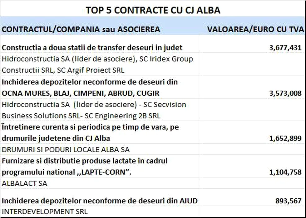 ALBA. Unde au mers banii publici în 2014. Topul firmelor care au contracte locale cu statul