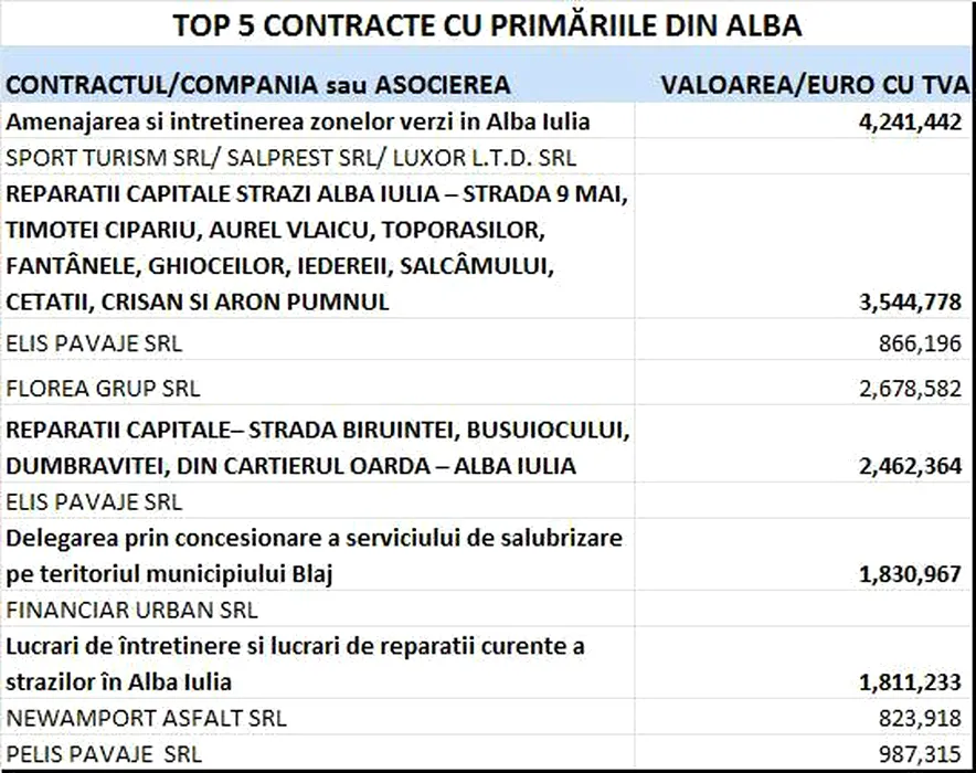 ALBA. Unde au mers banii publici în 2014. Topul firmelor care au contracte locale cu statul
