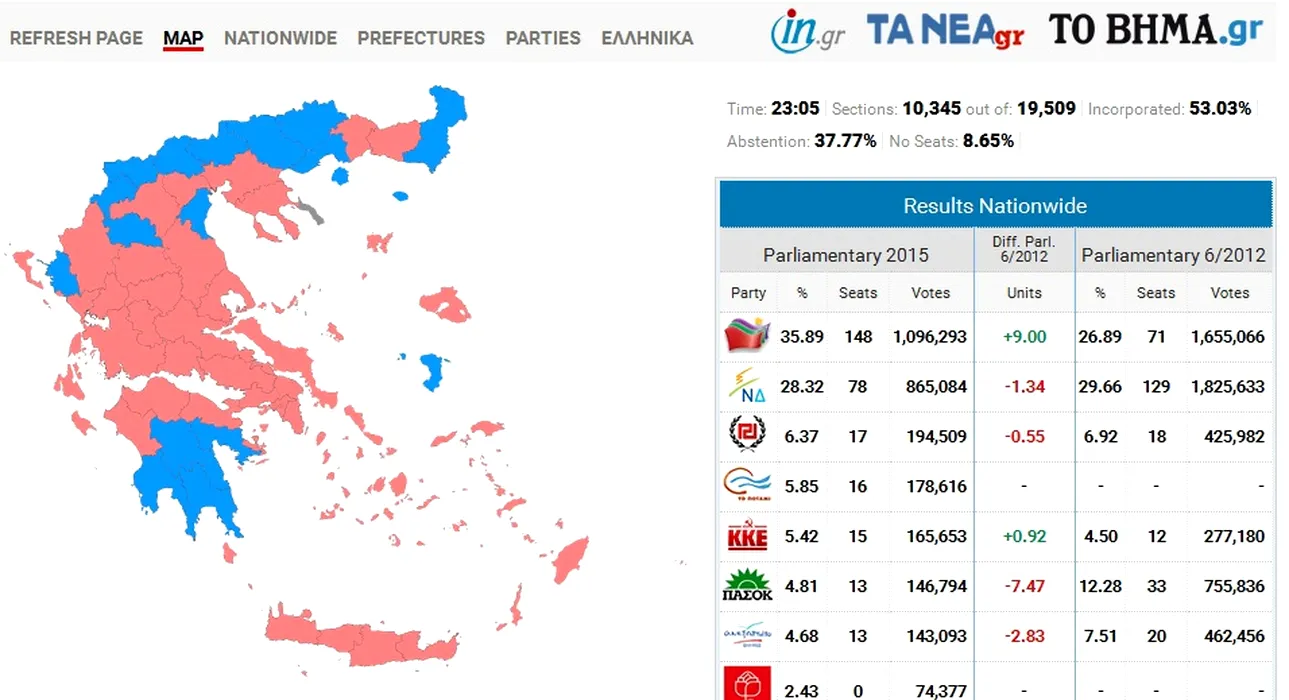 ALEGERI GRECIA. Victorie pentru stânga radicală. Rezultate oficiale parțiale: Syriza – 36%, Noua Democrație – 27%