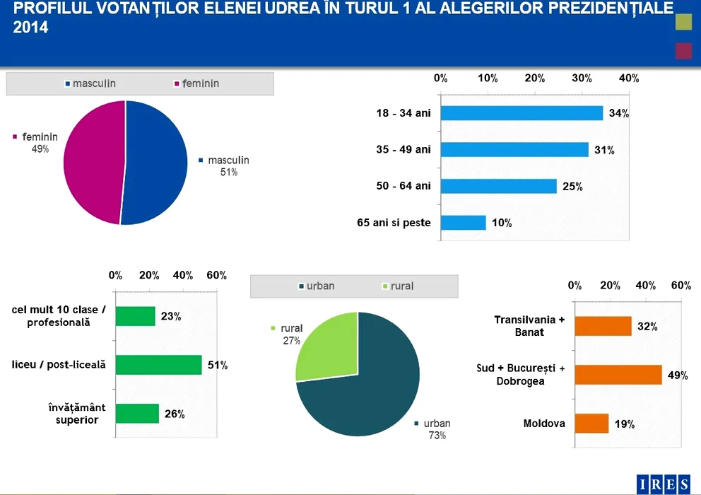 ALEGERI PREZIDENȚIALE 2014. Cine sunt votanții Elenei Udrea: tineri din sudul țării, cu studii medii