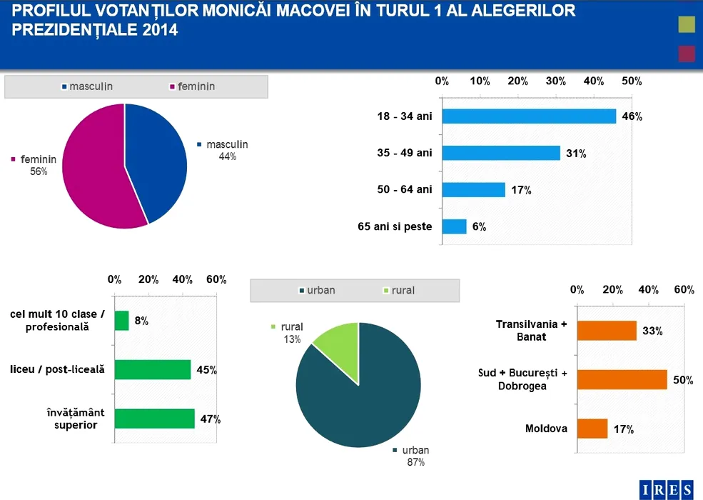 ALEGERI PREZIDENȚIALE 2014. Cine sunt votanții Monicăi Macovei: tinere urbane, cu studii superioare, din București și Transilvania
