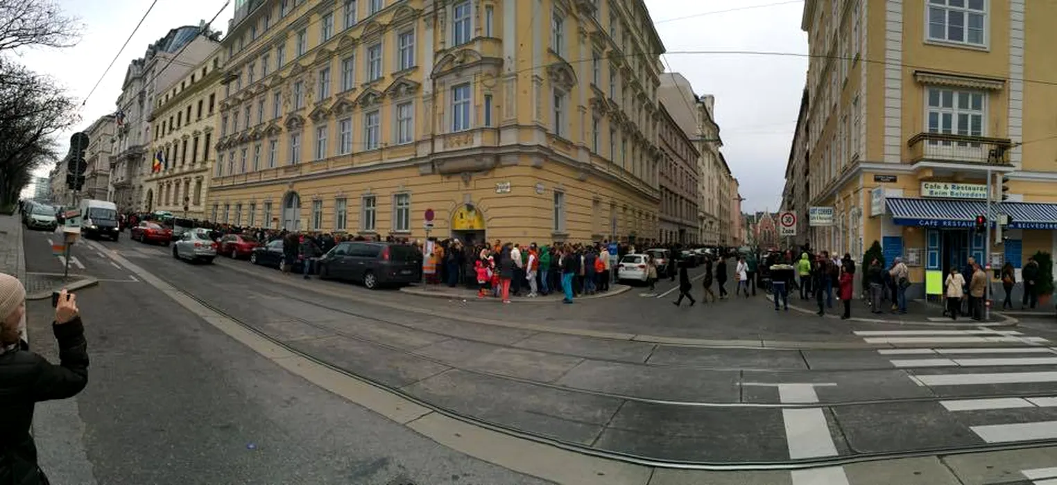 ALEGERI PREZIDENȚIALE 2014. Mii de români la coadă la Viena, îndemnați să meargă în Slovacia sau Cehia. „Personalul ambasadei a angajat serviciu specializat de pază și protecție”