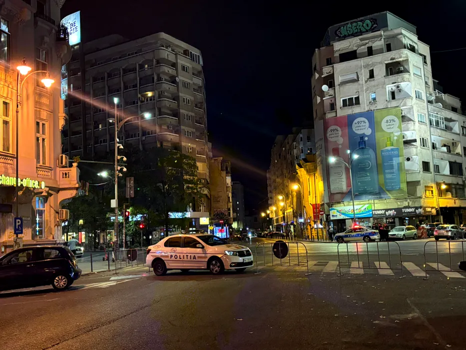București ora 23.40. Zona Piața Romană, în apropiere de Sinagoga Eșua Tova, este înțesată de mașini de Poliție, strada George Enescu a fost închisă