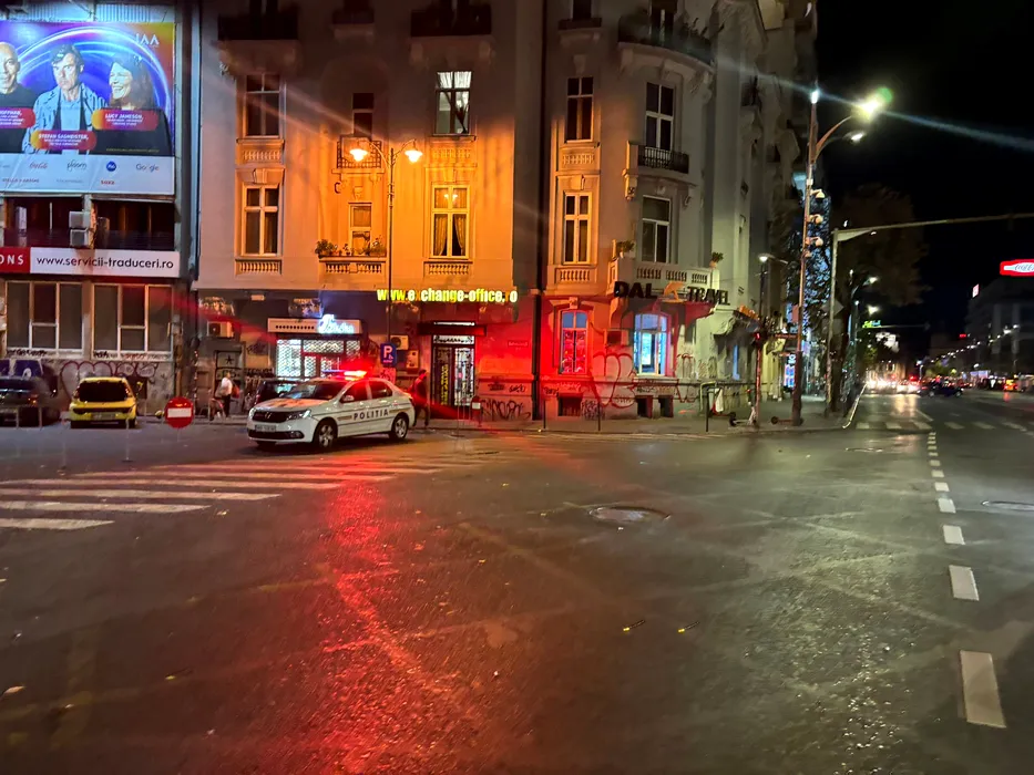 București ora 23.40. Zona Piața Romană, în apropiere de Sinagoga Eșua Tova, este înțesată de mașini de Poliție, strada George Enescu a fost închisă