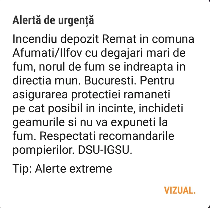 ALERTĂ EXTREMĂ: Bucureșteni, NU IEȘIȚI DIN CASĂ! Incendiu la un depozit Remat din Ilfov. FUMUL se îndreaptă spre Capitală