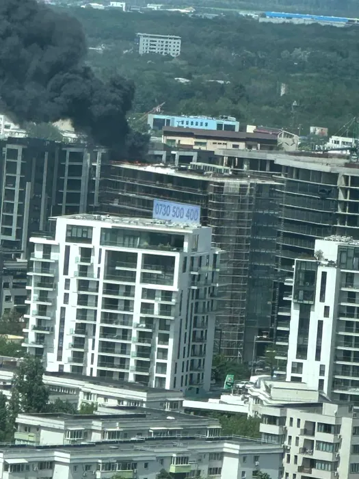 Alertă în București: A luat foc izolația unei clădiri în construcție / Mesaje RO-Alert, trimise / 103 muncitori s-au autoevacuat / Au ars materiale