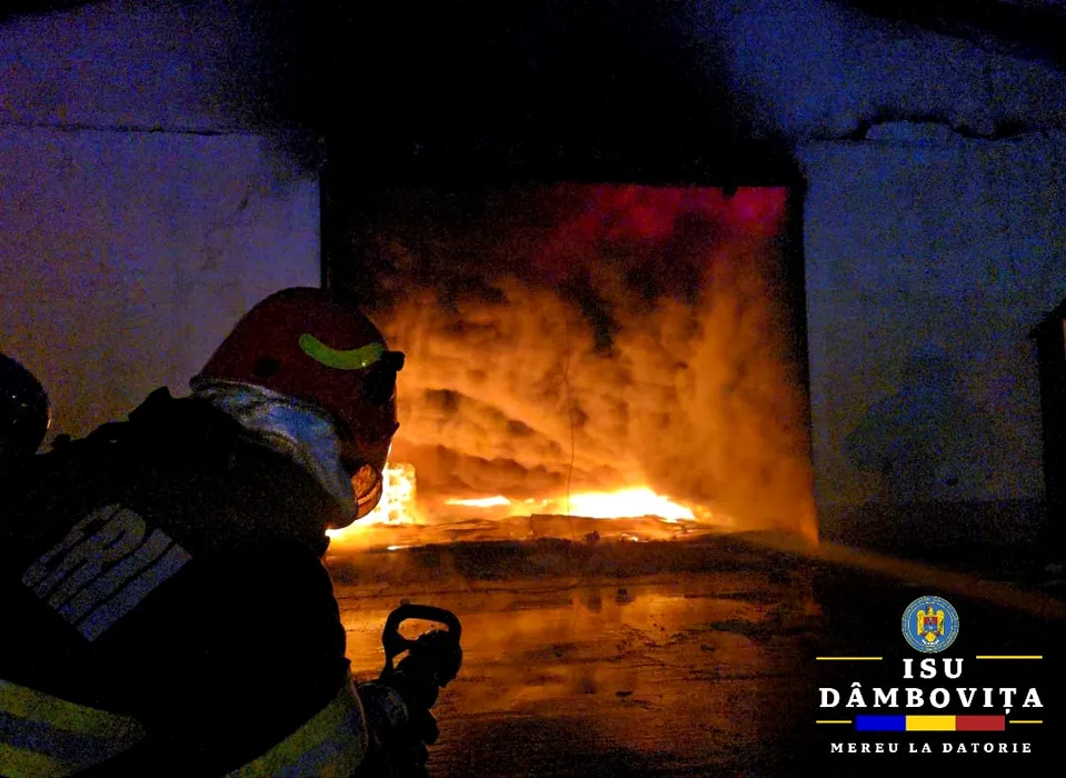GALERIE FOTO: Alertă în Dâmbovița. O hală a fost cuprinsă de un incendiu uriaș. A fost emis mesaj RO-ALERT