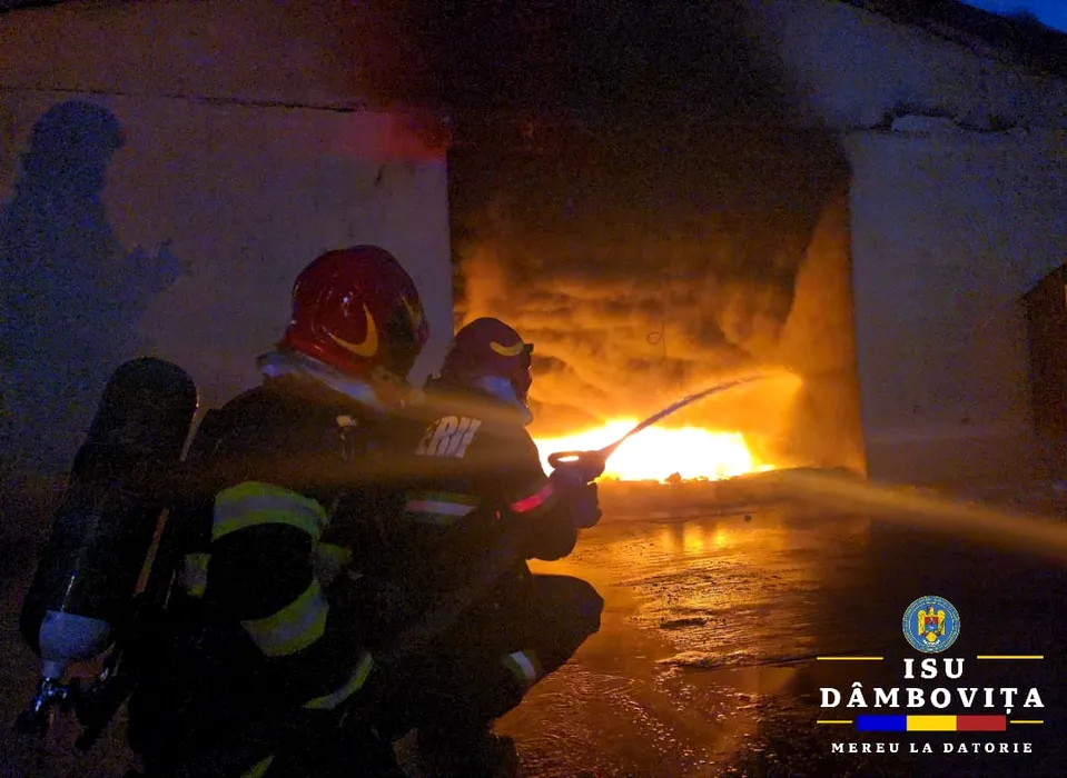 Din cauza degajarilor mari de fum, precum și pentru prevenirea populației, a fost transmis mesaj Ro-Alert. Până la acest moment nu au fost identificate victime / Sursa foto: ISU Dâmbovița