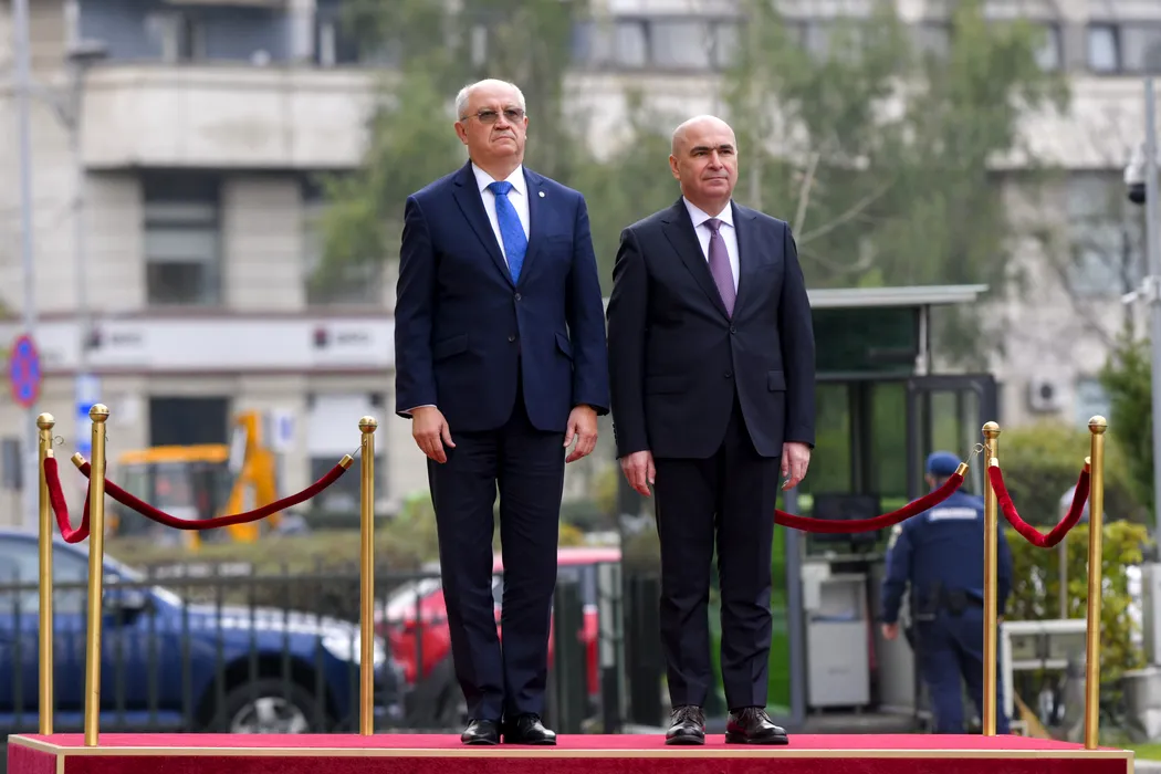 Primirea oficiala de catre premierul Romaniei Ilie Bolojan (D) a prim-ministrului Republicii Moldova, Alexandru Munteanu (S), in Bucuresti, joi, 13 noiembrie 2025. ALEXANDRU DOBRE / MEDIAFAX FOTO
