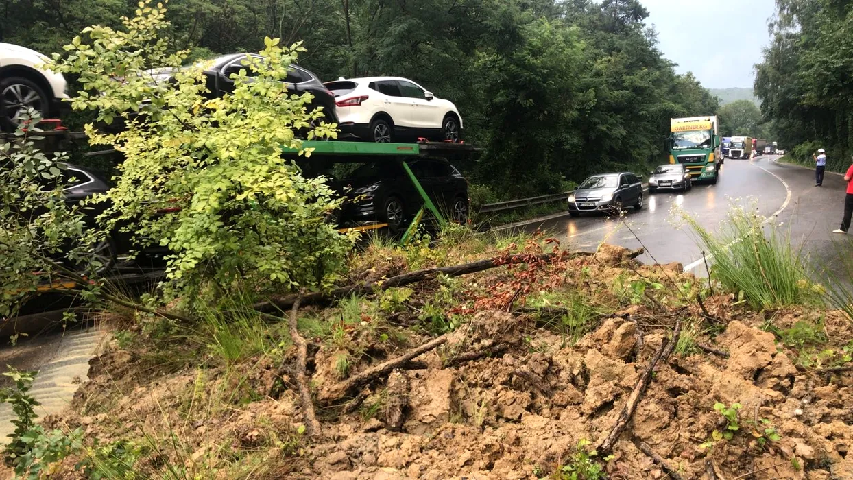 Alunecare de teren pe DN 7, în Argeș. Traficul rutier este restricționat