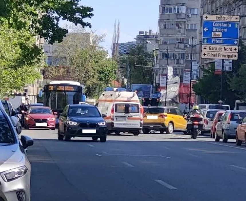 FOTO | Ambulanță implicată într-un accident, pe Calea Dorobanți din Capitală