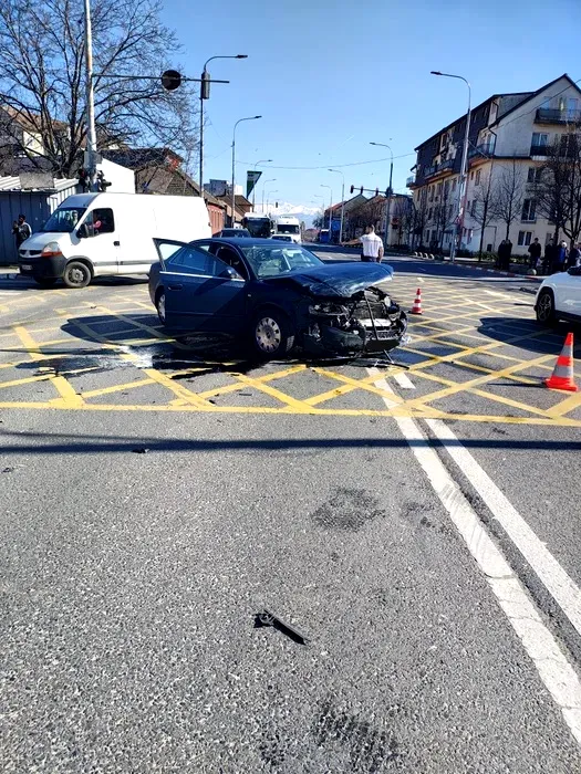 Ambulanță SMURD răsturnată într-un accident în Sibiu: șapte persoane implicate