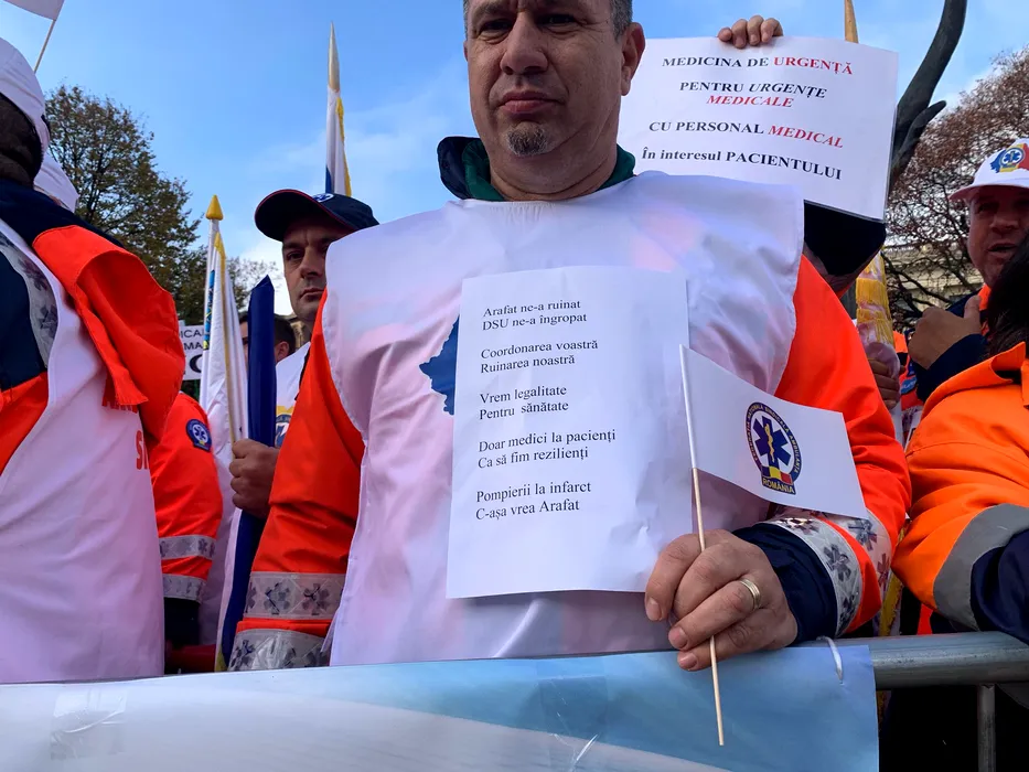 GALERIE FOTO: UPDATE: Ambulanțierii protestează marți în Capitală. Ei acuză sabotarea serviciilor publice de ambulanţă de către Departamentul pentru Situaţii de Urgenţă / Reacția lui Raed Arafat: „Este denigrator și fals” (FOTO-VIDEO)