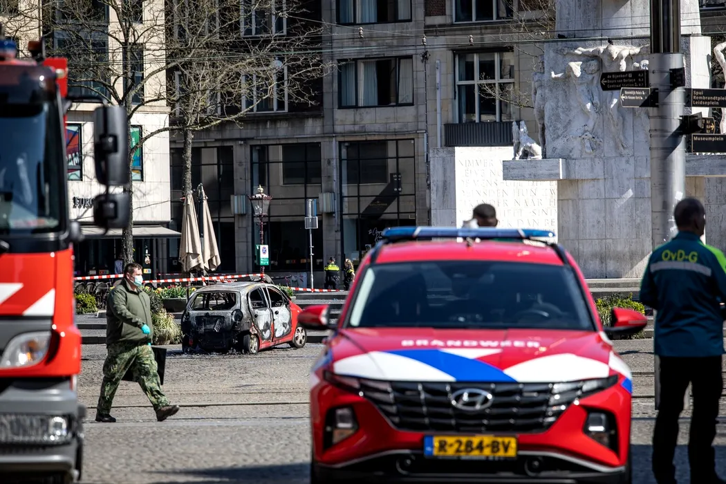 Amsterdam: O mașină a EXPLODAT și apoi a luat foc în Piața Dam din centrul istoric