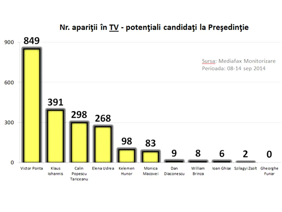 ANALIZĂ Mediafax Monitorizare: Aparițiile în media ale candidaților la prezidențiale – Ponta și Iohannis cresc considerabil, Macovei scade ușor