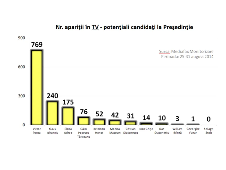ANALIZĂ Mediafax Monitorizare: Candidații la Președinție, după topul aparițiilor în media – Ponta, Iohannis și Udrea pe primele locuri