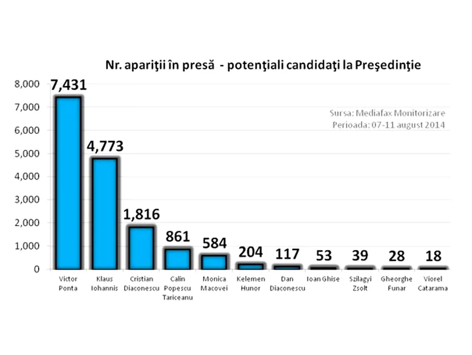 GALERIE FOTO: Analiză Mediafax Monitorizare: Ponta conduce detașat topul aparițiilor în media, urmat de Iohannis și Diaconescu