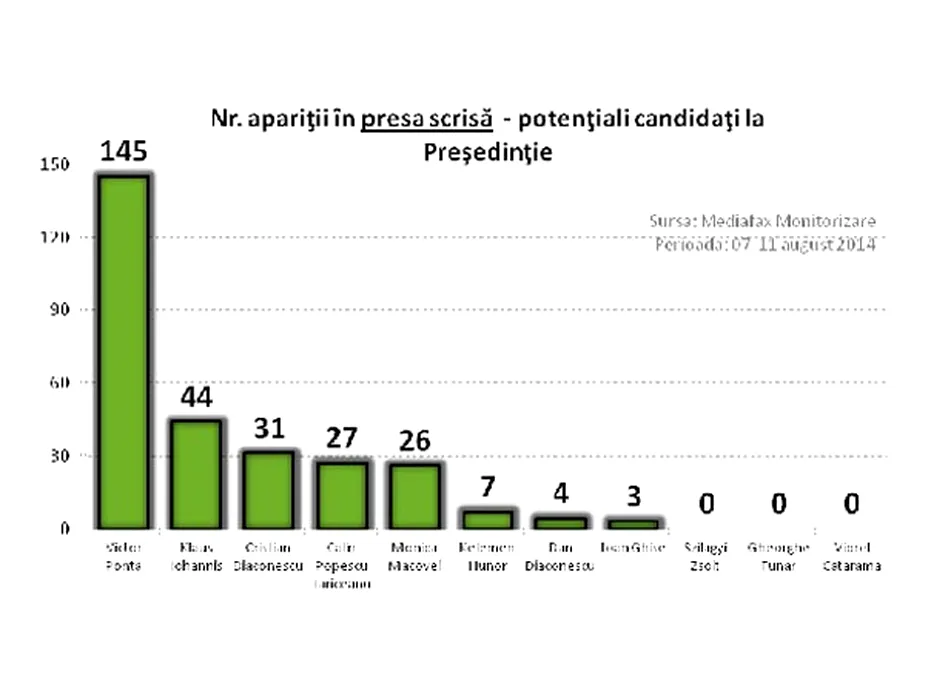 Analiză Mediafax Monitorizare: Ponta conduce detașat topul aparițiilor în media, urmat de Iohannis și Diaconescu